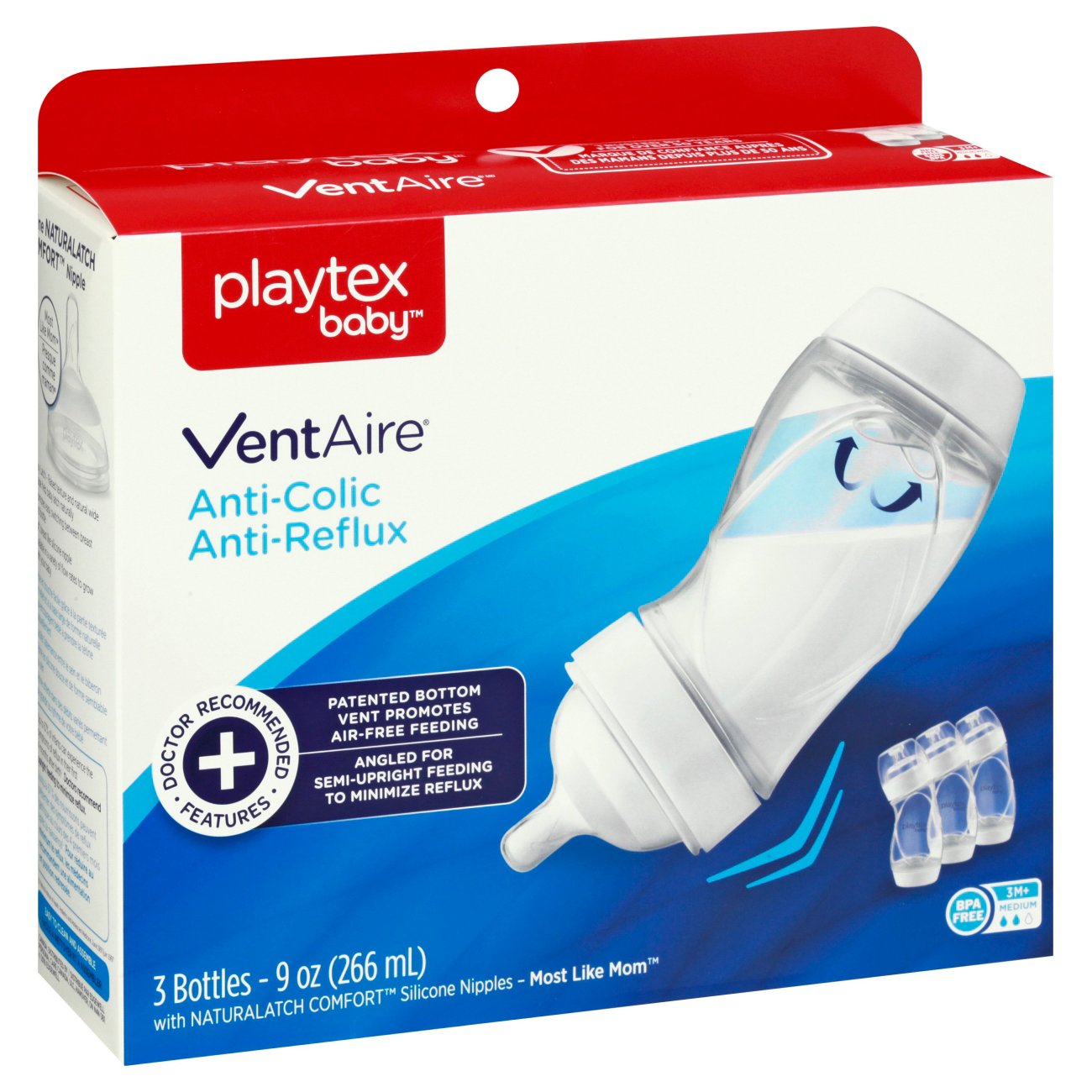 ANTI-COLIC FEEDING VentAire bottles are specially designed to prevent colic by reducing air ingestion. Up to 3 cash back Stage 1 Slow Flow Compatible with all Playtex bottles sold separately Features a raised texture area that mimics the breast and encourages your baby to latch on.